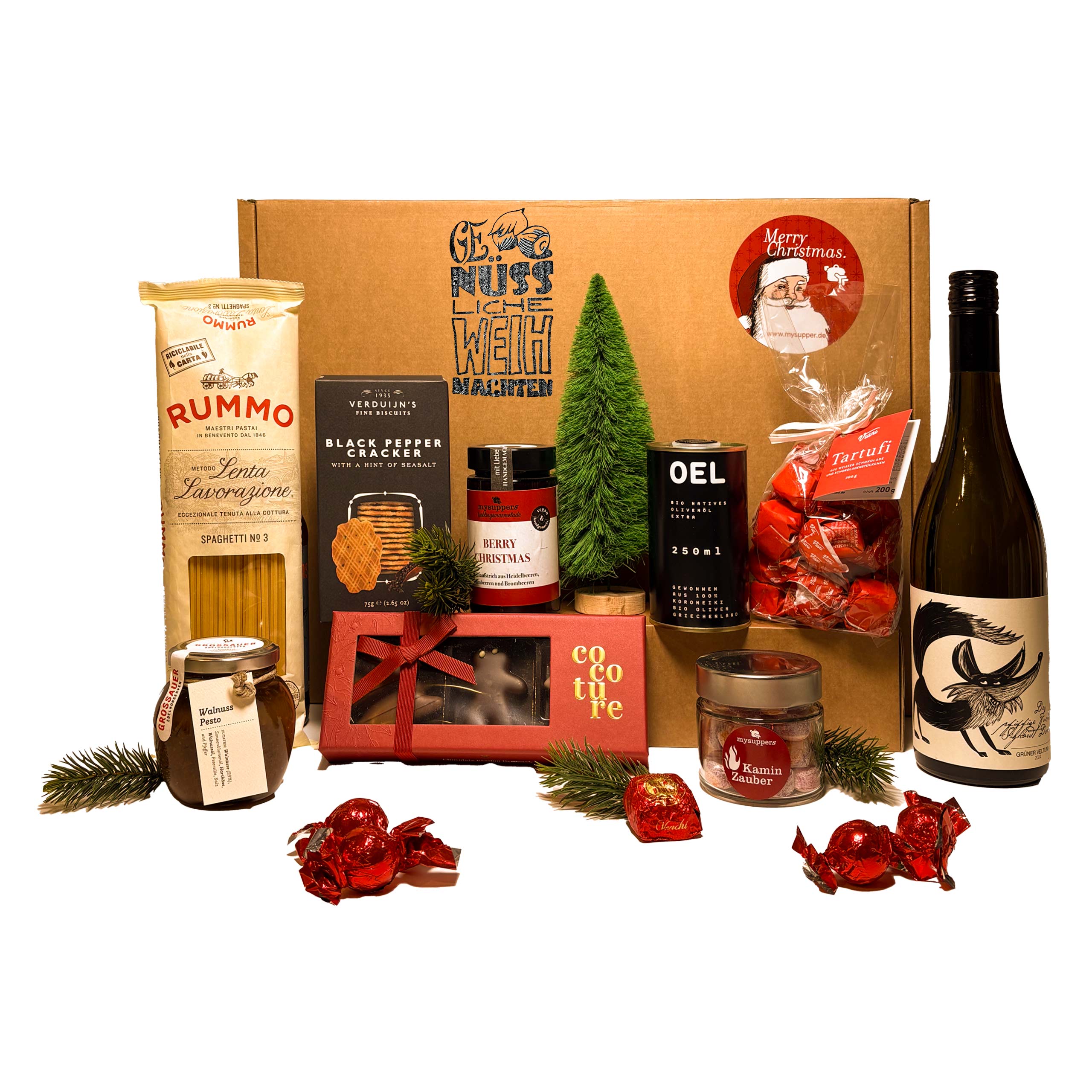 Verschenke zu Weihnachten Genuss und festliche Stimmung: Unsere Geschenkboxen mit Glühwein, Schokolade, Nüssen und feinen Spezialitäten sorgen für leuchtende Augen unterm Tannenbaum. Handverpackt, edel und mit Liebe gestaltet – das perfekte Weihnachtsgeschenk für jeden Anlass.