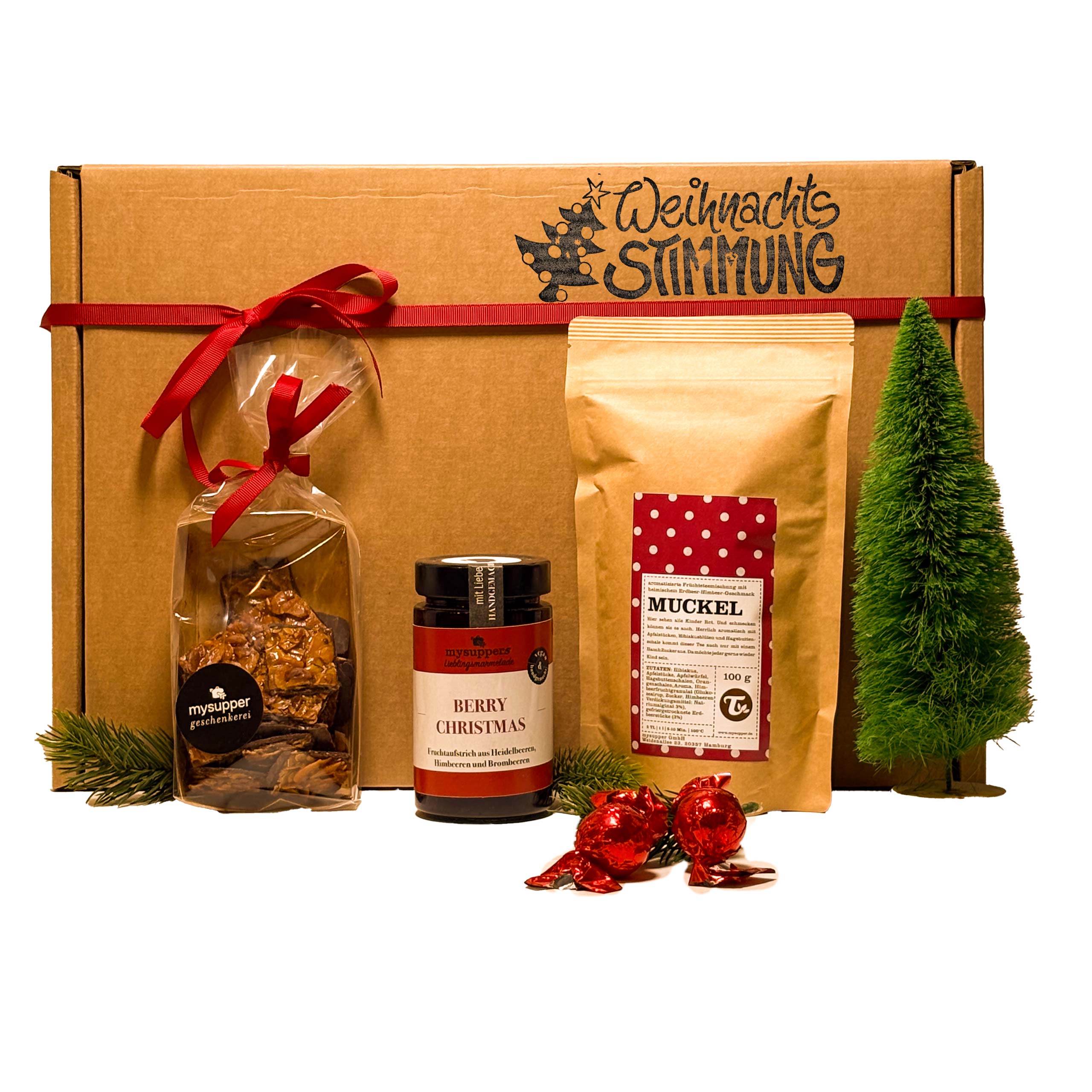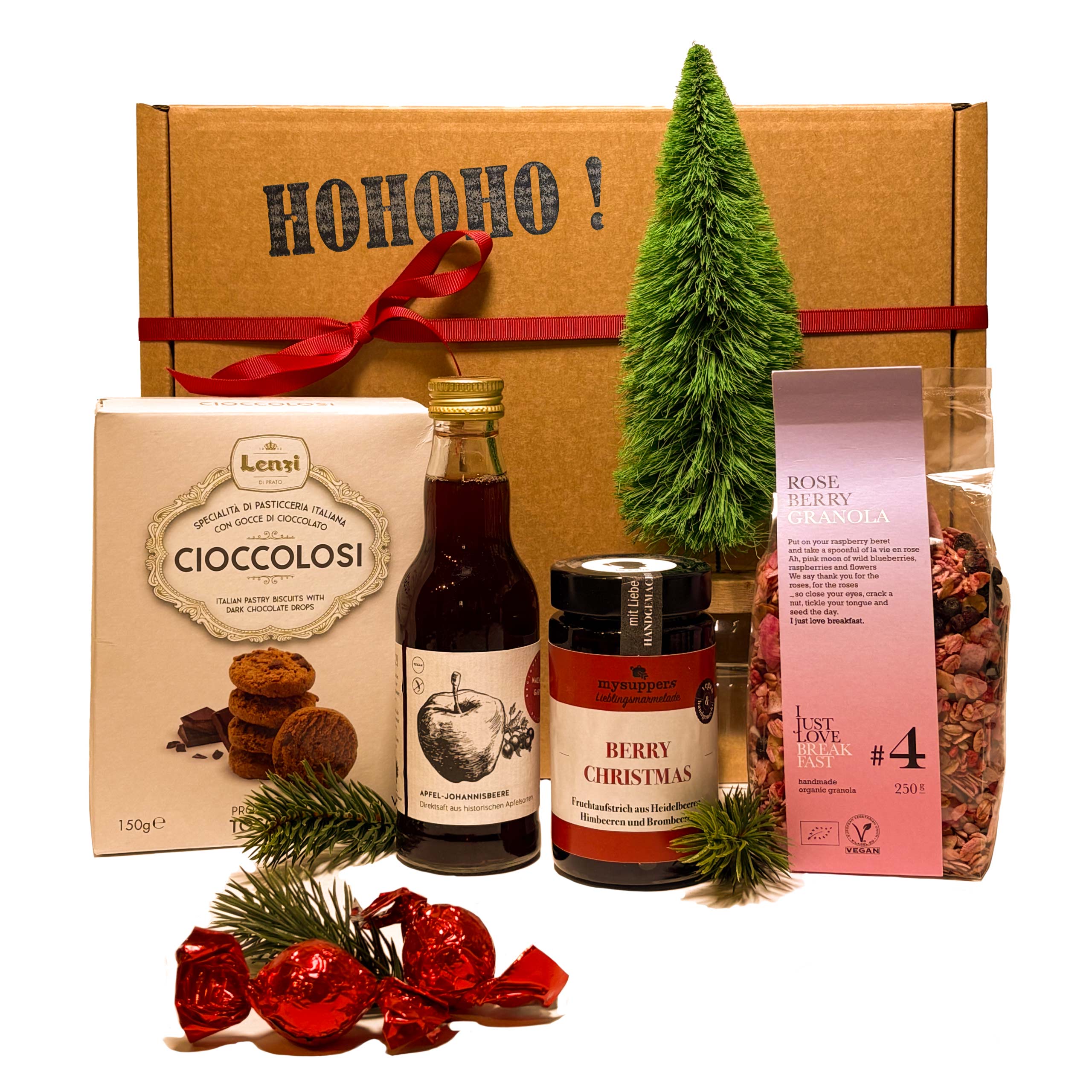 Fruchtaufstrich „Berry Christmas“ ist in diesen Geschenk-Boxen enthalten.