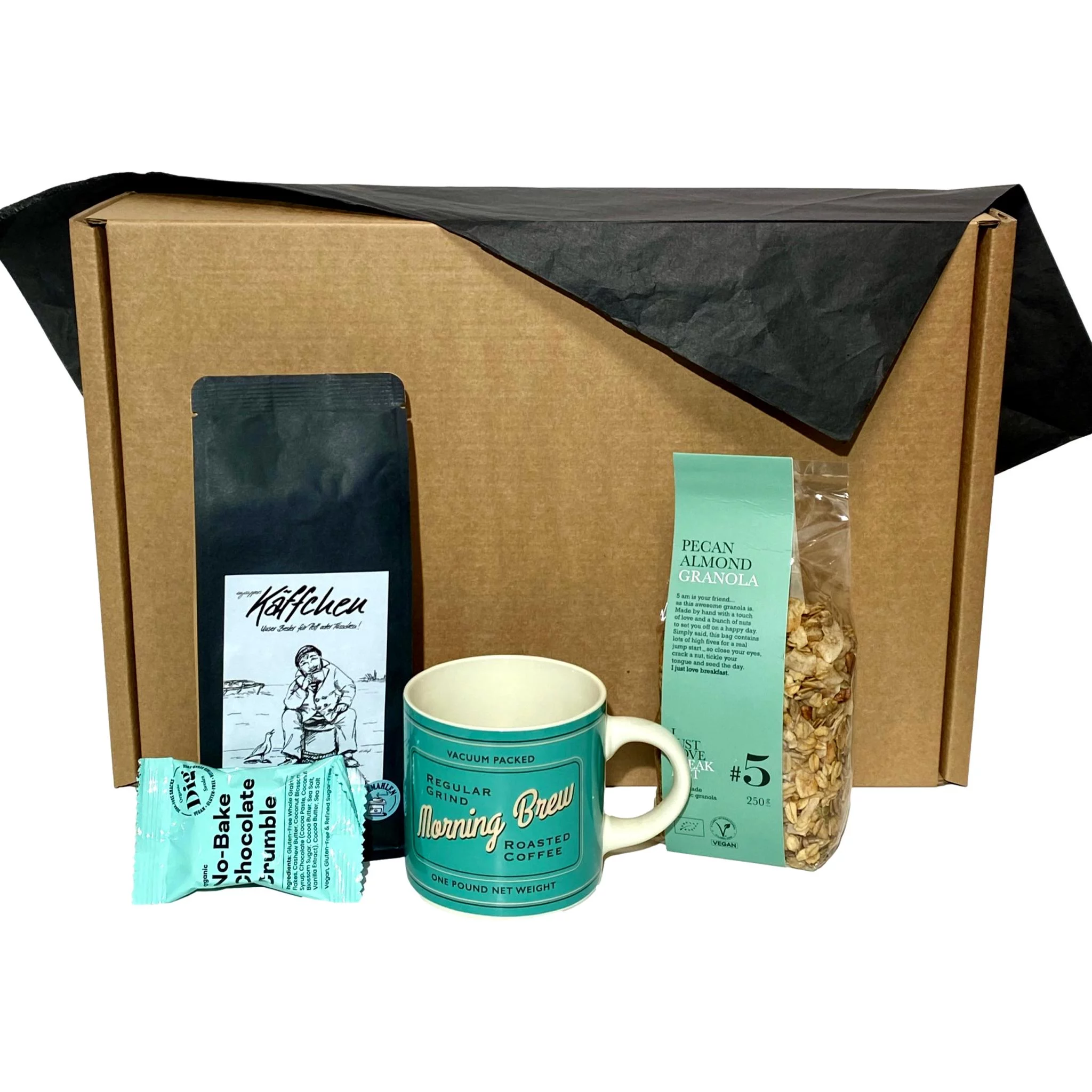 Die Kombination sorgt für einen gelungenen Start in den Tag – mit Genuss, Energie und kleinen Wohlfühlmomenten. Du erhältst eine fertig verpackte Geschenkbox, die du direkt überreichen kannst. Alternativ kannst du auch jemanden per Post mit diesem schönen Geschenk überraschen.