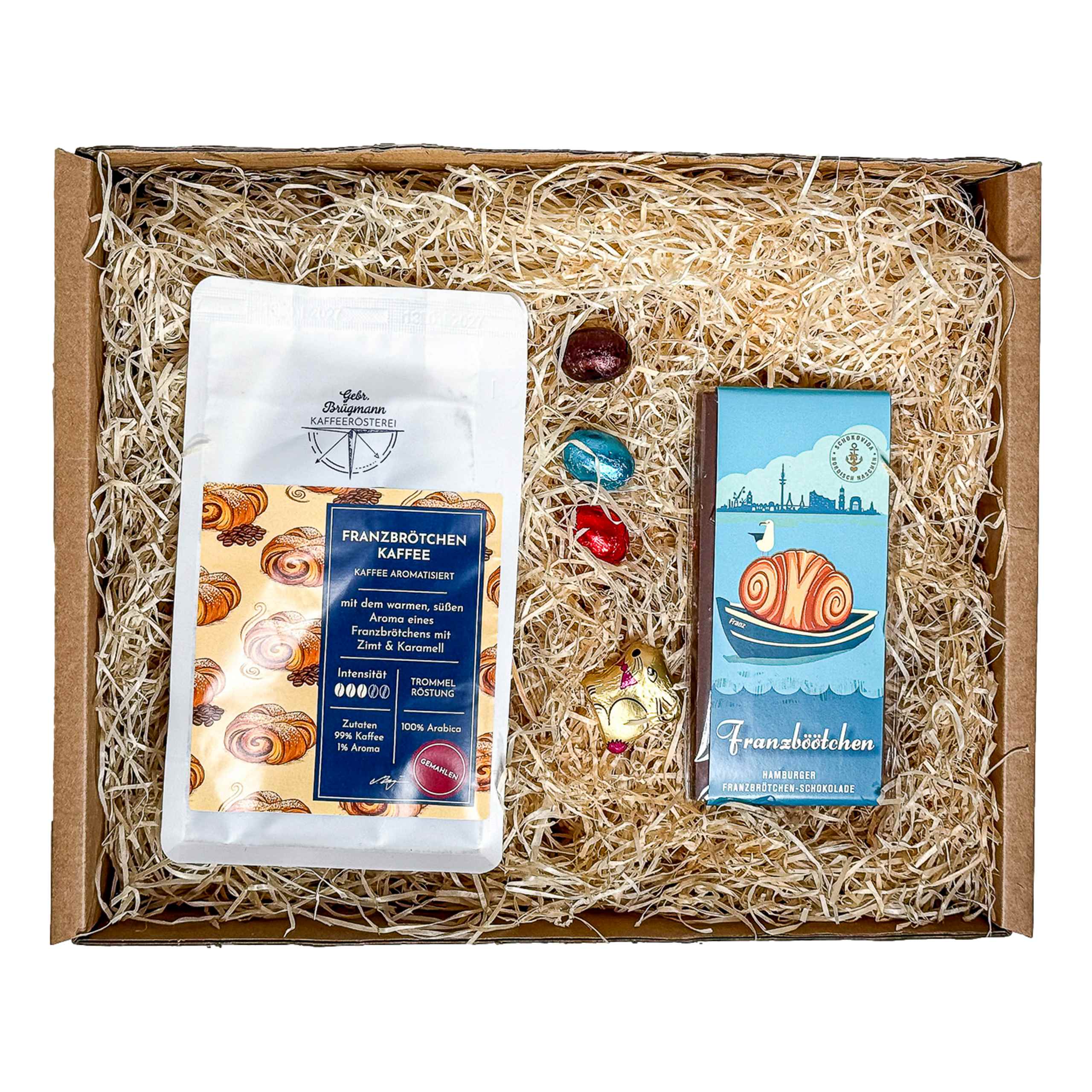 Kleiner Schokoladenhase ist in diesen Geschenk-Boxen enthalten.